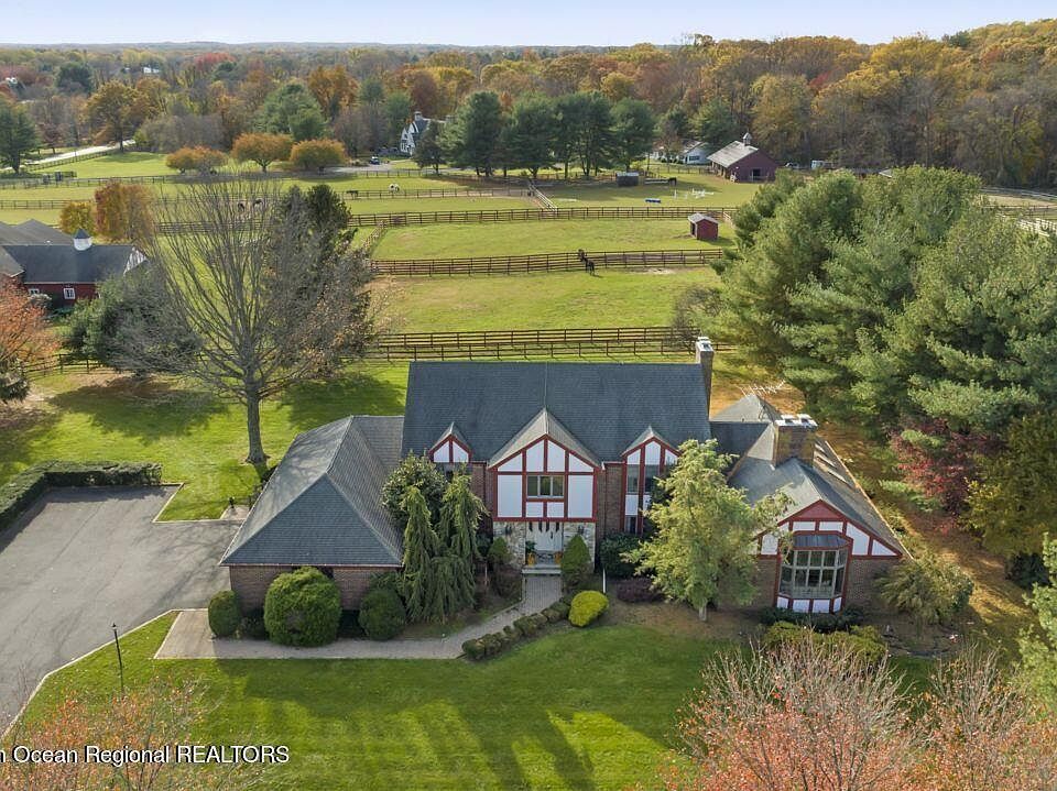 This property features and 4800 square foot, beautifully kept colonial home. This home features 5 bedrooms, 3.5 baths, 3 car garage, full basement, 1st floor primary suite with fireplace, large open kitchen, Huge family rooms with fireplace, library, formal dining room, 2 rooms suite on the second floor which could also be made into the primary suite. 2 other large bedroom, 3 car garage and full basement. The property features a 12 stall large barn with caretaker apt. and its own entrance. 9 fenced in paddocks with run-in sheds, some other assorted buildings all in great shape. Classic Colts Neck property