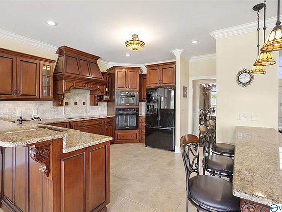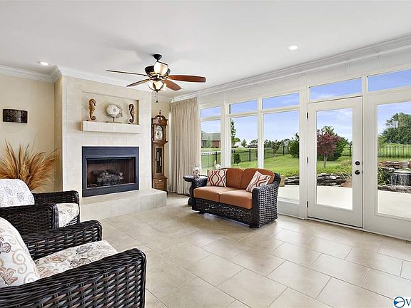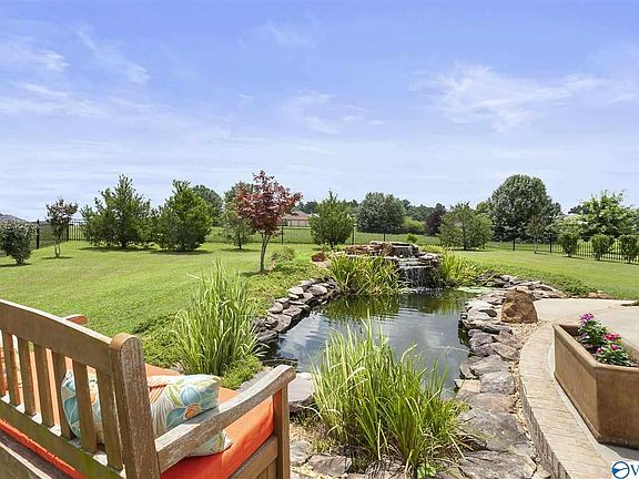 Beautiful custom built 1 story home on almost 1 acre! Extensive crown molding throughout, stained barrel ceiling in the study with custom built-ins. Large sunroom with fireplace and 30 feet of windows and remote controlled window coverings. The back porch overlooks a custom $30k waterfall and pond. The storm shelter is built into the foundation. Immaculate and ready for you to move into.