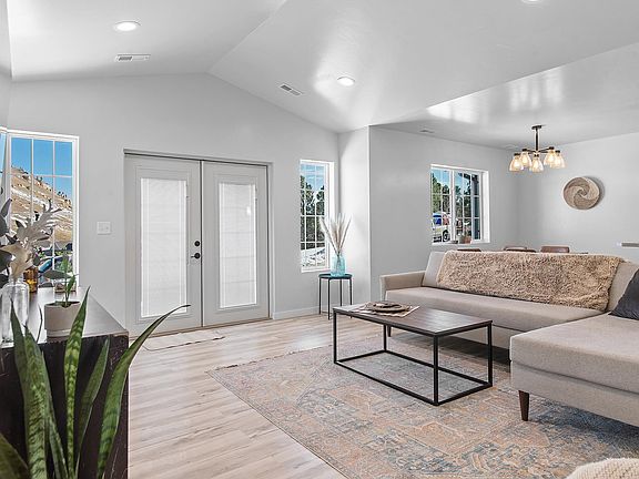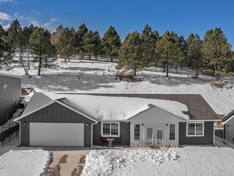 Listed by Emily Costopoulos, Keller Williams Black Hills Realty, 858-472-6986. Only minutes from downtown Historic Deadwood, this new construction home on Mystery Wagon Road has the coveted Black Hills views, while still being close to the amenities of Deadwood, Spearfish and surrounding towns. French doors with built in blinds lead to an open living and dining area featuring vaulted ceilings, a modern kitchen with soft close Medallion cabinets, open shelves, and all new appliances. Two bedrooms and two bathrooms with lifetime warranty Onyx vanity countertops, including a large master suite with floor to ceiling tile, modern finishes and a walk-in closet. The heated two car garage has plenty of room for vehicles, toys and storage. Front landscaping is no maintenance xeriscape.