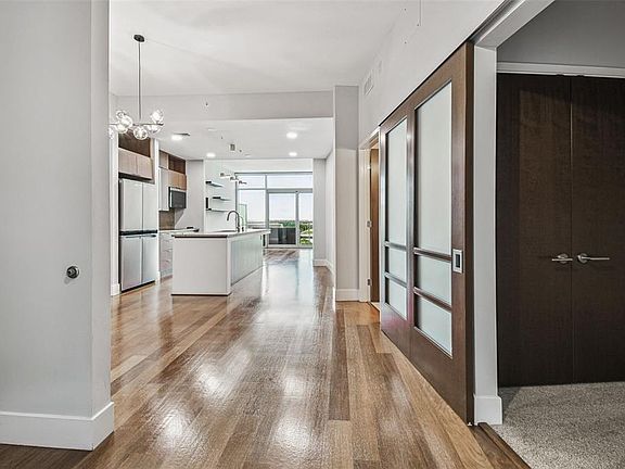 Under contract-accepting backup offers. TOP FLOOR! This spacious 2-bedroom, 2-bath condominium boasts 1,237 square feet of beautifully designed living space with soaring 10-foot ceilings, refinished wood flooring, and expansive eastern exposure windows that capture beautiful sunrises. The open living area features custom shelving, designer lighting, and a private balcony with water views—ideal for morning coffee or evening relaxation. The galley-style kitchen is a chef’s dream with granite countertops, stainless steel appliances, a large island with storage cabinets, and ceramic cooktop. The adjoining dining and living spaces create an inviting flow, perfect for entertaining. The primary suite offers floor-to-ceiling windows, automatic blackout shades and a custom walk-in closet with built-ins by Closets by Design. The en-suite bathroom features double vanities, granite countertops, a soaking tub, tiled walk-in shower and a Bluetooth compatible smart mirror (anti-fogging technology, wifi, and streaming capability). The additional bedroom and bathroom provide comfort and flexibility, complete with a large closet, granite vanity, and a shower/tub combo. Modern upgrades include Alexa-compatible automatic shades, Wi-Fi compatible light switches and thermostat, keyless fingerprint/fob entry, and a stackable Whirlpool washer/dryer. The unit also comes with a private gated assigned parking spot (#114) and is both pet- and investor-friendly, allowing short- or long-term rentals. Residents of The Place at Channelside enjoy an array of resort-style amenities, including: a large pool + spa with bar and electric grills, fitness center and dry sauna, clubhouse with ping pong, billiards, and game room, expansive decks overlooking the city and port of Tampa, 24/7 concierge, on-site management, security, and gated parking. Perfectly positioned just steps from Channelside, Water Street, Sparkman Wharf, Amalie Arena, USF Morsani College of Medicine, The Tampa Aquarium, Crunch Gym, and Greenwise Publix, this home offers the ultimate in walkable city living. Don’t miss the opportunity to own this exceptional property in the heart of Tampa’s most exciting district.