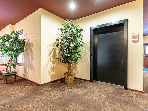 Beautiful Luxury Brownstone condo in downtown Grand Forks. This is a great unit located on the end of the building with a great panoramic view that exhibits windows on 3 sides of the unit. The building is secure with an underground heated garage and 2 parking spaces, a storage space, and elevators. The unit has beautiful finishes from a gourmet-style kitchen, amazing woodwork, hardwood floors,
