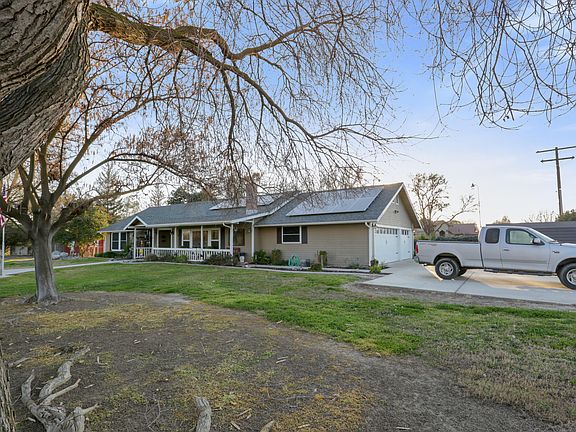 This Exeter country home offers close to town convenience with a charming country feel. Home is located on 1.25 acres with a spacious fenced backyard, area with pens for 4H projects or animal area, large covered patio, outbuilding for storage and ample parking, including a 3 car garage. This home has open living space with vaulted ceilings, living room has a corner fireplace, kitchen offers large breakfast bar, dining area has built-in hitch and slider to back patio. Three bedrooms, including a very large master suite, with acess to back yard from the the bathroom. The laundry room has a 1/2 bath for convenience.