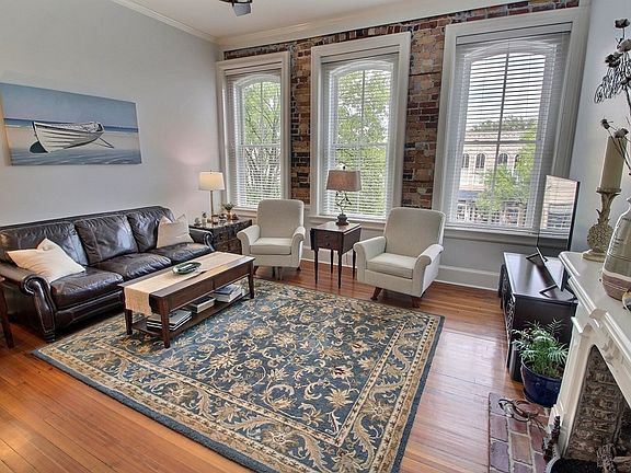 Great 2nd floor unit overlooking charming Broad Street.This unit has a fabulous floorplan and as you enter you step into a foyer with crown moulding, judges paneling, and beautiful trim work. The living area is spacious , has large windows and a beautiful fireplace with gas logs. The kitchen has recessed lights, undercounter lighting, disposal, granite countertops and tile splashback, stainless steel stove, microwave, dishwasher, refrigerator and wine cooler, custom made bar stools also remain with property. There are two spacious bedrooms and two bathrooms.... the tiled master bath has double sinks, and shower. The second bath has a single sink with a tub/shower combination; other features include a laundry room with full size washer and dryer that remain with the condo; a storage unit; beautiful pine flooring; high ceilings; 2 parking spaces; and access to the Mitchell House rooftop terrace! This is an absolutely gorgeous unit...please call for appointment to see!
