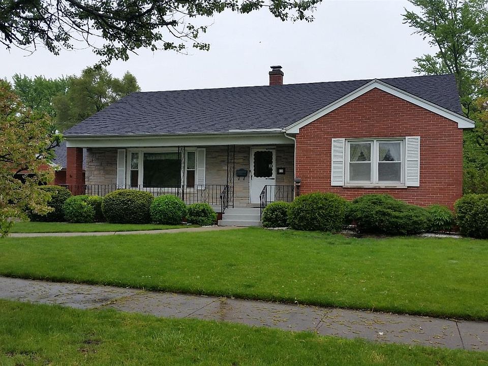 Motivated seller! This solidly built brick ranch sits on a large corner lot with many ornamental plants and trees. It has a covered front porch, detached 2 car garage, shed, plus a sun room off the rear of the garage. Spacious living room, bedrooms (two have hardwood floors and there are hardwood floors under the living room, hall and 3rd bedroom carpeting. Formal dining room, kitchen appliances, washer, dryer and two window air units remain. The basement has a finished family room with a limestone fireplace. (see realtor's remarks). There is a craft room plus a work room with workbench and shelves that remain. There is a shower in the laundry area of the basement. Seller offering HSA Home warranty to purchaser.