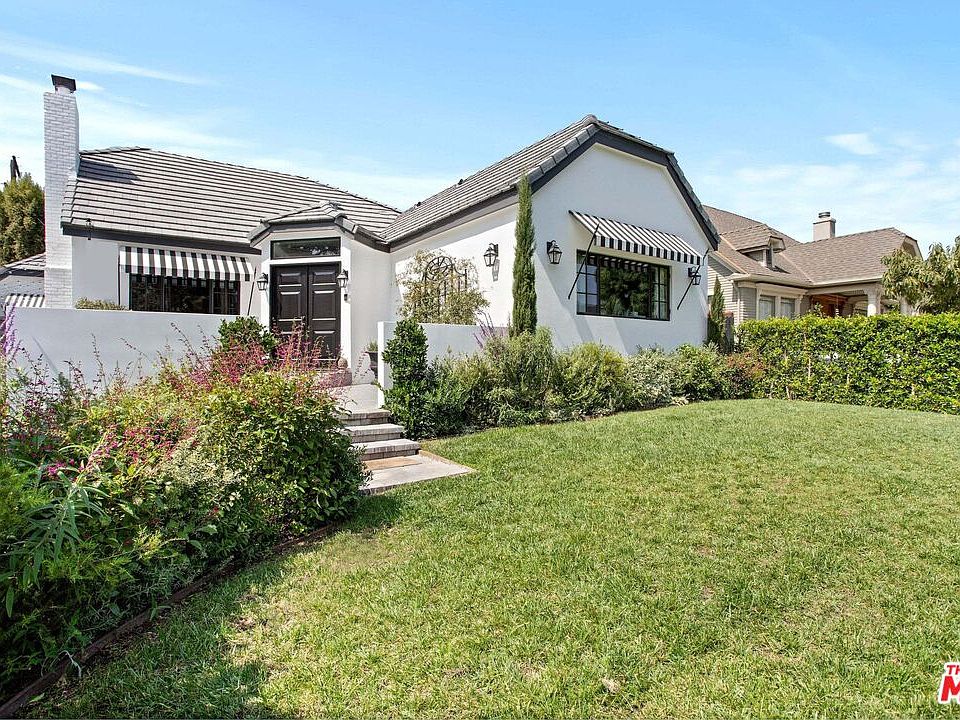 Behind tall hedges on a quiet street in Windsor Square, this tucked away single-story home has been renovated with the utmost attention to detail, design, and function. Surrounded by mature hedges, you are greeted by a generous front lawn and patio, leading to a double-door entry with sightlines to the backyard, setting the tone for effortless indoor-outdoor living. The first bedroom and bath are ideally situated in their own wing of the home, offering privacy and views of the front yard. Pass the dramatic formal living room, anchored by an original fireplace, as well as a powder room and ensuite bedroom to find an expansive eat-in kitchen open to the sun-drenched family room with floor-to-ceiling steel frame doors and views of the sparkling pool and spa. Through a private hallway, the primary suite features high ceilings and French doors that open to its own patio, as well as a two-way fireplace, a walk-in closet, and a luxurious marble bathroom with a double vanity, large shower, and built-in soaking tub. At the back of the property, the flexible studio space overlooks the pool, boasting its own bathroom and closet. Just minutes to the best of Larchmont Boulevard, this is a compound you will never want to leave!
