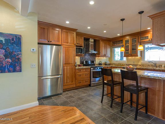 This stunning, completely updated, downtown house is only five blocks from Flagstaff's main square, public schools, and other key amenities. Updates include solid cherry cabinets and soft close wood drawers, gorgeous granite counter tops, new tile and wood flooring and high-end bath fixtures. An instant hot water system and dual forced air furnaces contribute to significant energy savings. The stone exterior and cove ceilings reflect its early 20th century lineage. Vaulted wood paneled ceilings and high windows upstairs provide wonderful light. A private office with attached bath and separate entrance may easily be set up downstairs while two laundry areas provide extra convenience. The master bedroom has its own separate entrance and a deck. Xeriscape landscaping is a feature of both the
