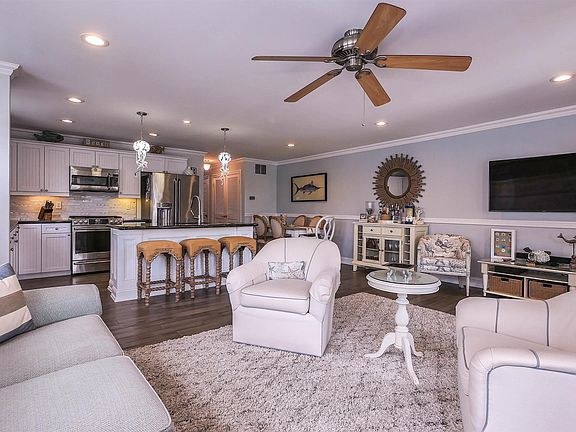 Beautiful, spacious 3 Bedroom, 2 bath condo with an ELEVATOR right in the heart of the highly desirable Margate Marina district. Park 2 cars in the garage and there is a short walk to the best beaches in Margate, or to the beautiful bay, water park, top notch restaurants, retail shops, mini golf, etc. Experience ocean breezes and gorgeous sunsets on your fabulous private deck, with automatic awning, and storage. The kitchen has a custom, oversized island that invites entertaining, and lots of beautiful white cabinets. Light pours into the famly room through double wide glass patio doors. Real wood floors, upgraded crown molding and baseboards, extra insulation in laundry area. Plenty of storage, including private extra shed and small patio area in the back area, additional storage area, and outdoor shower.
