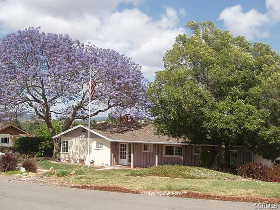Well maintained mid-century cutie with classic hardwood floors and several nice upgrades. Located near town but away from any noise, easy walking to Library, Schools and Main Street shops and restaurants. Pride of ownership shows ??? 3 bedroom, 3 bath home with 1,784 sqft (per appraisal) ??? Kitchen remodel included granite counters with snack bar seating & nice wood cabinets. Bosch Dishwasher, Kenmore range and refrigerator. R/O water filter system ??? Interior laundry room with granite counters, cabinets and sink ??? Huge brick fireplace in living room ??? New HVAC added 8 yrs ago. Solar system added 5 yrs ago (paid in full) ??? Windows were replaced with Pella brand??? Roof was redone 6 years ago with 2 layers of 30# felt ??? Over sized (790 sqft) 2 car garage/shop added 6 yrs ago, 2x6 construction, full bath, 220V, loft storage, high ceiling-room for a car lift, 7" concrete floor. Perfect Man-Cave for car guy ??? There is an additional 16x20 shed w/power ??? Private back yard offers nice views towards the Palomar mountains along with a garden area, assorted family fruit, water feature, horse shoes and a fun fort for the kids. The back yard is fully fenced.