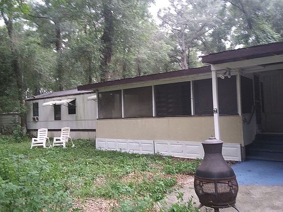 Nice older mobile nestled in the forest with cleared walking paths and room for horses toys and has large rv pad. Big screened in front porch and carport and 3 sheds. Two miles from suwanee river boat ramp and close to several natural springs. Enjoy this.outdoor paradise. No flood zone and home is very private. Nice cleared area for possible second home on the east 2 acres with 4 total acres fenced. Please call for an appointment. Please do not bother residents who are moving out. Sale CASH only and an appointment is necessary to see this natural homestead.
