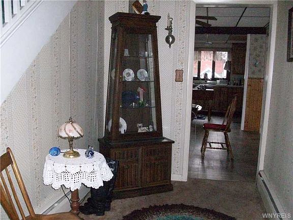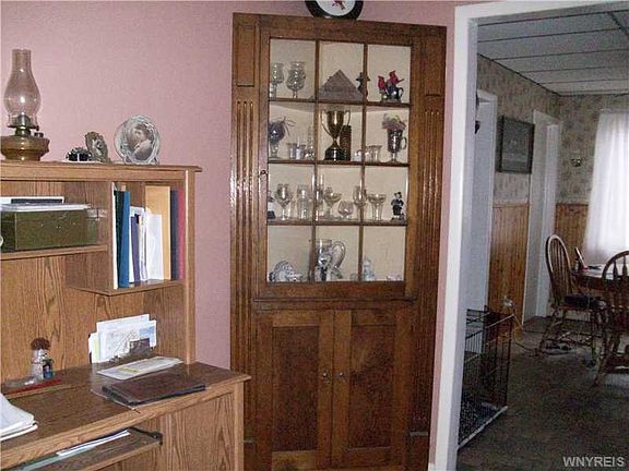 Spacious, well cared for home has large living rm, formal dining rm, kit with breakfast room, entry hall from front, 1/2 bath,lovely staircase to 2nd floor. 3 bdrms and full bath up stairs, stairway to full attic with great storage. Basement has inside & outside access. Gas or wood boiler. House has been well maintained and well loved over the years. Over 2 acres! Super yard for children, gardening. Det garage.