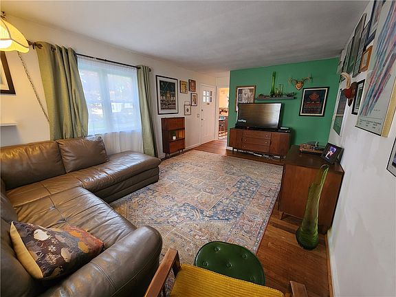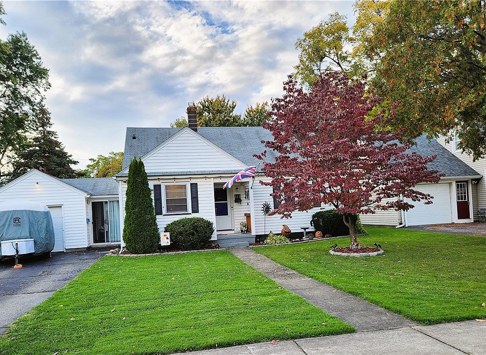 Meticulously cared for cape conveniently located in Greece minutes away from the mall, shopping, restaurants, gyms and 390 with a full 2nd floor master suite. Hardwood floors throughout the first floor. Brand new sliding glass door leads to the extensively landscaped back yard that is fully fenced in with a playset and shed. Attached garage is 26 ft deep allowing for plenty of storage. Some windows have been updated. 1st floor laundry. The sq ft does not match the public record as the 2nd fl is finished with additional 321 sf, bringing the total sq ft to 1165.