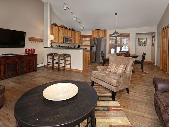 This walk to River Run gondola condominium is move in ready with main level living and an oversized private garage complete with electric vehicle charger. Luxury vinyl tile throughout as well as new appliances. Open floor plan offers vaulted ceilings, walkout patio and gas fireplace. Large bedrooms with en-suite and walk-in closet in Master, plenty of storage throughout. Strong HOA, roof was just replaced with no assessment. No transfer tax or resort fees, diligently maintained by current owner.