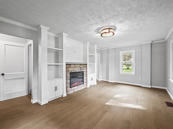 throughout the house. Spacious living room with electric fireplace and built in shelving. Soak in the tub or enjoy a shower