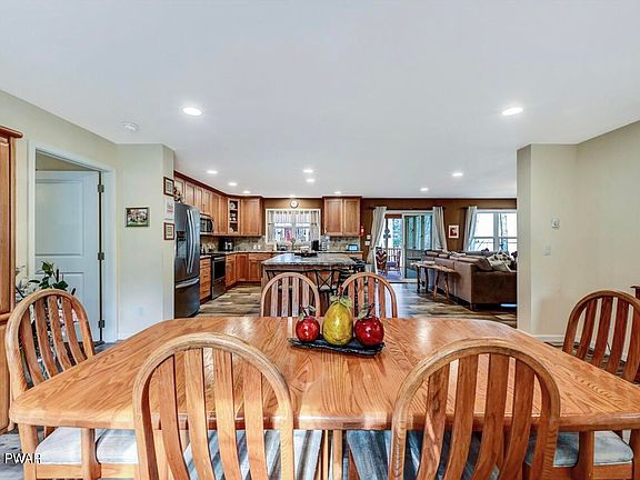ONE LEVEL LIVING WITH ATTACHED GARAGE in The Hideout, a four-season amenity filled community in The Northern Poconos, just two hours from the NY, NJ and Philly Areas. Nestled on the serene Oak Circle, a quiet loop with minimal through traffic, this home enjoys a prime location in the highly sought-after ''Golden Triangle.'' This coveted area offers close proximity to two beautiful lakes, including Roamingwood Lake, a powerboating haven, as well as premier community amenities such as the ski hill, beach, pool, tiki bar, main lodge, marina, and pickleball/tennis courts.Welcome to this beautifully designed ranch home, offering the ease and comfort of one-level living. Step inside to an inviting open floor plan featuring a stunning kitchen with a huge island, perfect for entertaining. The kitchen flows seamlessly into the dining area and a cozy living room with a electric fireplace, creating a warm and welcoming space for family and friends.Relax and unwind in the gorgeous screened-in porch, complete with knotty pine vaulted ceilings that bring a rustic yet refined touch. The split floor plan provides ultimate privacy, with a spacious primary bedroom suite featuring a full bathroom, walk-in closet, and peaceful retreat on one side of the home. On the opposite side, you'll find two additional bedrooms and a full bathroom, ideal for family or guests.Convenience is key with a large laundry area and closet located just off the two-car garage entry. The full unfinished lower level offers endless possibilities for future expansion, whether you envision a recreation room, additional living space, or a home gym.This home comes fully furnished, ready for you to move in and start enjoying its many features. Don't miss the opportunity to make this your perfect retreat!