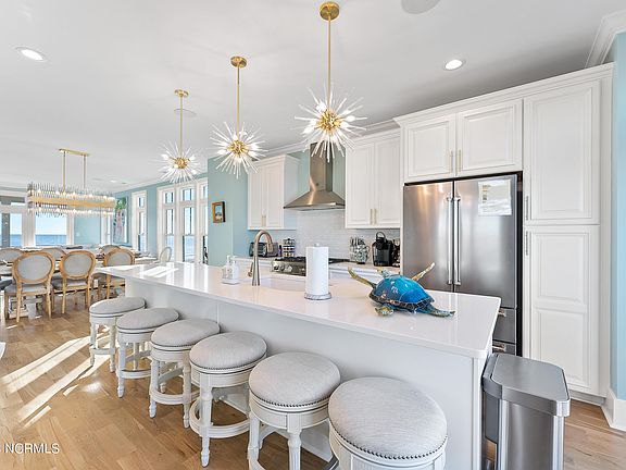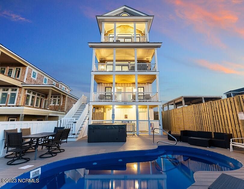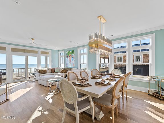 Welcome to Your Dream Ocean Front Retreat! This Magnificent 1 Yr Old Custom 5 Spacious Bdrms, 4 1/2 Bathroom Home is a Testament to Modern Elegance & Sophistication. An Elevator Creates Easy Access to all 4 Flrs. Located on the Crystal Coast Shore of Atlantic Beach on Sought After Ocean Ridge Dr, this property offers an Unparalleled Opportunity to Enjoy the Ultimate in Coastal Living. Enjoy your own direct ocean access with a Blue Tooth heated inground pool & Jacuzzi out back. Walk directly from your property to the sandy shores for endless beachcombing, swimming, and sunset strolls. This home features Luxury Finishes and Details throughout. All fixtures and finishes are in Pristine Condition. This house is perfect for large families or hosting guests in comfort. Wake up to breathtaking panoramic views of the sparkling sea and feel the ocean breeze from your private balconies on each floor. Each Room has custom Plantation Shutters. The spacious open concept living area seamlessly connects the living, dining, and kitchen spaces, creating an inviting and social atmosphere. The Huge Family Room w/fireplace has a sliding glass door that opens for entertaining indoors or outdoors. Modern Gourmet Kitchen features top-of-the-line Italian stainless-steel appliances, sleek countertops, and an oversized island, making it a chef's dream. The large master suite boasts a Large Shower with double sinks, with direct ocean views. The two-car garage has Heat and Cooling. Security System Throughout w/ a Blue Tooth Sonos System indoors and outdoors. Enjoy the outdoor entertaining area at its finest with a large deck inground heated pool, outdoor shower, Jacuzzi, perfect for dining & entertaining while gazing out at the endless horizon. Impeccably landscaped gardens surround the property, creating a Serene & Inviting Ambiance. Furniture Negotiable. 111 Ocean Ridge Drive offers high-end detail and design creating an elegant custom classic beachfront home for future generations to enjoy