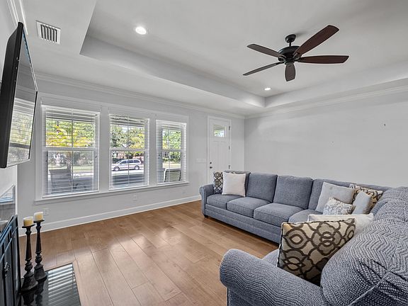 Welcome home to this custom one-story family home featuring 2,066 sf of luxury, three bedrooms, three and a half baths, a spacious front and back verandas, and an over-sized, two car garage. A short distance to the Bridge of Lions & downtown St Augustine, this practically new home, built by Generations Homes, was constructed with thoughtful consideration to the countless modern upgrades and a spacious, open concept floor plan. The well-appointed, gourmet kitchen boasts granite countertops, tile backsplash, upgraded cabinetry, stainless appliances, recessed and pendant lighting, upgraded wood floors, and a spacious California-style island. The sunlit dining area offers coffered ceilings, crown molding, recessed lighting, views of the private backyard, and French doors that offer direct access to rear veranda. The adjacent great room is wonderful for entertaining with its custom fireplace with built -ins, coffered ceilings, recessed lighting, crown molding, striking wood floors, gorgeous window casings, and an upgraded powder bath. The private owner’s suite features coffered ceilings, two separate baths, two walk- in closets, and views of the private backyard. This versatile home is further enhanced by two bedrooms, a conveniently located Jack-and-Jill bath, a separate laundry room with custom cabinetry, and a spacious garage. The serene outdoor living space features a 22x12 screened and paver veranda, a paver patio, and a spacious fenced backyard. Additional exterior upgrades include elevated construction with 9.33 elevation, paver driveway, seamless gutters, solar panels, impact glass windows, water softener, and upscale landscaping. One of the best locations in St. Augustine! Located on Anastasia Island, walk or bike to downtown and St. Augustine’s pristine beaches. Walk to Salt Run Inlet where you can watch the boats, dolphins, birds, sunrises and the shimmers of the sunsets. Boating, Kayaking, and paddle boarding galore! Walk 5 min to the Conch House to jump on your boat, enjoy live music and happy hour on the water. Call today for a private tour.