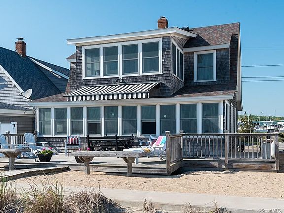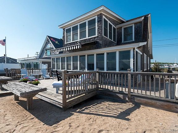 Looking for a charming cottage that sits on a beautiful sandy beach? Look no further! This 4 bedroom, 2 full bath cottage has been restored with many recent improvements such as a new septic tank, new windows, new roof, new cedar shingles, new garage doors, new kitchen cabinets and counter, new water heater, upgraded electrical system and much more. Directly across the street is a 2 car garage with plenty of room for storage and 2 changing rooms. There's also an outside shower and even a laundry room off of the kitchen. Enjoy breathtaking views of Long Island Sound from one side and beautiful views of Pilot's Point Marina from the other. What are you waiting for? Come and watch the sunsets and start making your memories at this beautiful beach!