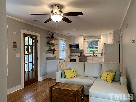 Beautiful rustic bungalow in downtown Carrboro! Nearby shops and restaurants in with the luxury of a secluded street and wooded view. Many updates throughout including newer hardwood floors in all rooms, a remodeled kitchen with soft-close wood cabinets, quartz counter-tops and much more! Situated on 0.25 acres with a fenced in patio, gazebo and fire pit for entertaining and relaxing on cool nights, as well as a fenced in garden. A studio off the deck provides many options for an artist's designs.
