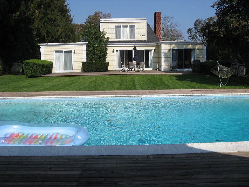 This handsome two-story Mansard features a living room with fireplace, dining Area, three bedrooms and three baths, and a den. Additional amenities include central air-conditioning, deck, pool house with sitting room, changing room, kitchenette , wet bar, additional full bath and a heated gunite swimming pool. Large Deck and beautiful grounds for outside entertaining. Close to ocean beaches, shopping and restaurants.
