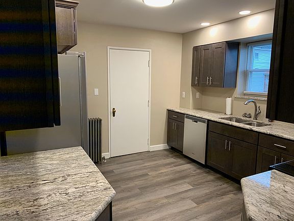 Newly remodeled apartment available immediately. This pristine property has new flooring, paint and fixtures throughout. Living, dining, kitchen and laundry/pantry on 1st floor. 3 BR, 1.5 BA and linen closet on 2nd floor. Custom kitchen has granite countertops & stainless appliances (Fridge, Dishwasher, and double-oven included) Washer/Dryer also included. Absolutely no pets and no smoking. Credit Check or References Required. Landlord pays water/sewer and garbage. Tenant pays heat, electric and internet/cable.