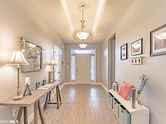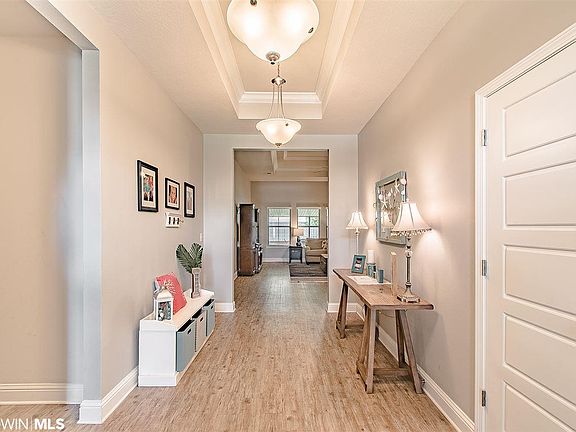 This beautiful conveniently located GOLD FORTIFIED 5 bedroom home is literally walking distance from Fairhope's top rated middle and high school. Its got the sought after open concept floor plan that's perfect for entertaining including a Large Living Room with 10 foot ceilings with tray accents. The kitchen has a large island, plenty of cabinets, a spacious pantry, and stainless steel appliances and the attached dining space with room for a large table, has a brand new light fixture. The split bedroom plan separates the master from the other 4 bedrooms: 3 down one hall with a bathroom and 1 separate from the others which could be a perfect office or playroom if needed, and storage galore with spacious closets in all of the bedrooms and extras throughout the house. The over-sized master suite has tray ceiling and a master bath with it all. garden tub, separate shower, linen closet and walk-in closet! The sellers added a spacious screened-in porch so that you can take in those summer evenings in the private fenced backyard. You don't want to miss out out on this 5 bedroom home at this great price in Fairhope!