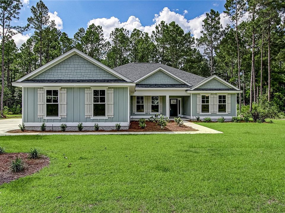 **Completion scheduled for Mid August. **Interior pictures are from previously constructed property, finishes may vary. New construction built by Josselyn Homes located in the Estates of Sanctuary Cove close to I95 with easy commute to Brunswick and Kings Bay. This 4 bedroom 3 bath home features board & batten siding, a split floor plan with open concept living space, granite counter tops, custom cabinetry & stainless appliances. The master suites boast an elegant master bath with double vanity, soaker tub & tile walk-in shower. A must see home offering many upgrades throughout, including custom blinds. This property is not located in flood zone. **Seller holds a Real Estate license in the state of GA & related to listing Broker.