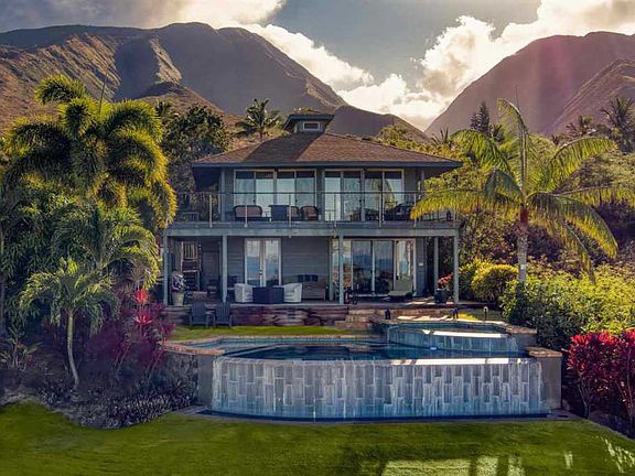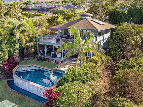 This is the most affordable home in Launiupoko. This ocean view estate opens up to one of the biggest, most beautiful ocean views you ever see. If you love being entertained by watching the activity on the ocean; whales breaching, sailboats cruising at a leisurely pace, the currents, the clouds and on and on, youâll be in heaven on the grand lanai of this estate. Your estate is perched on one and a half acres. It is a pristinely maintained, but low maintenance property. Enjoy the inside/outside Maui lifestyle at its best. You have amazing views from 1,500 square feet of lanais on two levels. The great room upstairs opens wide to the grand tiled lanai. The flow from the kitchen and great room to the huge lanai is perfect for entertaining and relaxing. From the lower level lanai you can step right out to your infinity edge pool and hot tub. The master bedroom is en-suite and opens to your lanai, pool and the heavenly view, as does your second bedroom. There is a lot of Maui style detail and character in this unique home. The property also has two great storage units. And, since this area is agricultural zoned the owner has put in an easily maintainable orchard with a rare Champagne mango tree, several cacao trees, avocado and multiple citrus trees. Youâll want to see the lowest price home in Launiupoko, so contact your agent for details and to arrange a showing today.