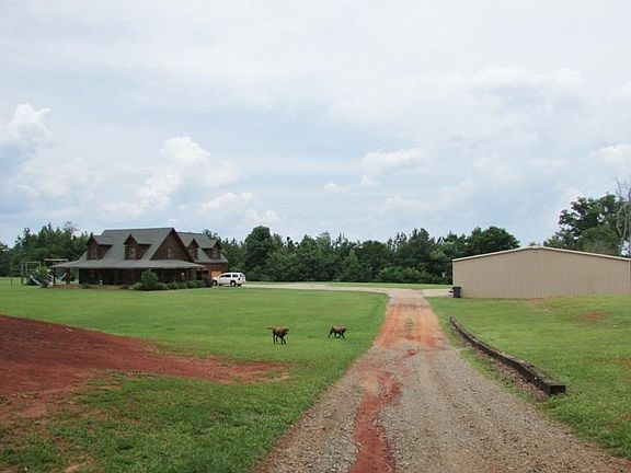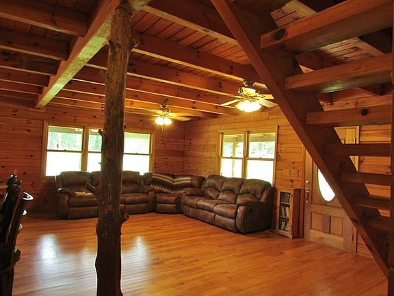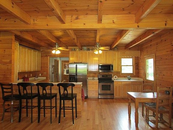 AWESOME LOG HOME ON 4.3 ACRES! THIS HOME HAS BEAUTIFUL OAK WOOD FLOORING, MAPLE CABINETS, EXPOSED BEAMS AND 6 X 8 D STYLE PINE LOGS-SLIGHTLY ROUNDED ON THE EXTERIOR AND FLAT IN THE INTERIOR. THE KITCHEN HAS SOLID SURFACE COUNTERS, ALL APPLIANCES, A BREAKFAST BAR, LAUNDRY ROOM AND A WALK-IN PANTRY/OFFICE AREA. 2 BEDROOMS UP, 2 BEDROOMS DOWN PLUS A HUGE BONUS ROOM. THERE'S A 50 X 50 (2500) SQ FT DETACHED 4 BAY GARAGE TOO! IT HAS 4 ROLL UP DOORS, A WOODSTOVE, WORKSHOP AREA,BEDROOM AND BATH.