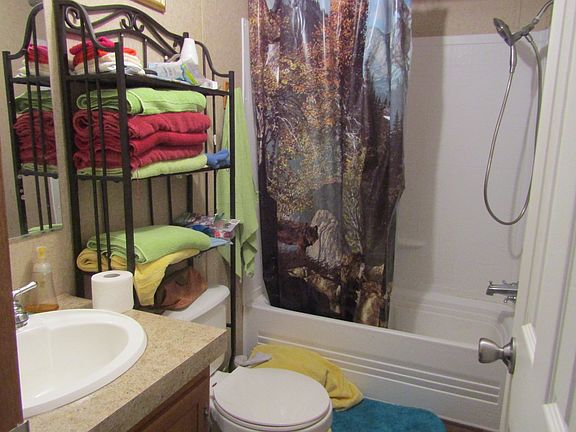 2014 mobile home situated on 1.25 acres m/l in North Rock Creek school district. Home is 68'x16', 1088 sq. ft. 3 BR/2BA and is total electric with central heat & air. Some carpeting & laminate flooring. Small fenced area in back. Storm shelter built in 2015; well/septic 2014. Kitchen stove, dishwasher & refrigerator will remain. Covered front porch, 10'x12' metal storage building. Trash pickup available. Electric bill averages $100-$150/month year around.