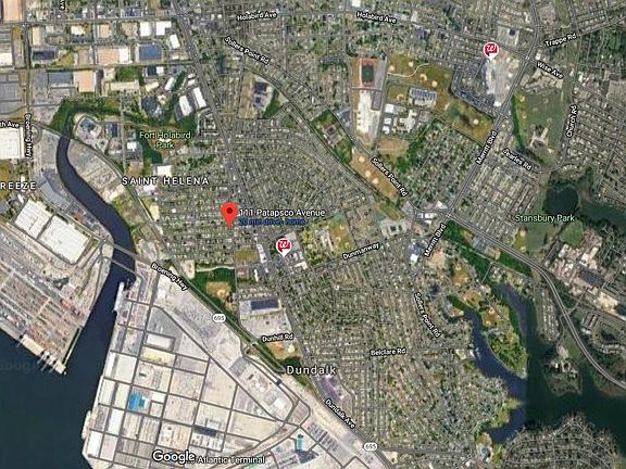 This town house is located two blocks off of Dundalk Avenue in Dundalk, Maryland. The M.T.A. bus route (CityLink Navy). It is a convenient 5 minute drive to the exit to I-695 Francis Scott Key Bridge. The location is also great if you travel the Baltimore Inner Harbor Tunnel Daily! Central A/C & Heat! Washer & Dryer! 1st Floor - Entering the home you come in to enclosed porch area that leads directly into the living room. Brand New Dark Wood Laminate Flooring throughout this level. Off of the living room you enter the dining room area with a office off to the left of the floor plan and a kitchen in the rear. The kitchen has Oak Cabinets, stone look counter-tops, single stainless steel sink and a gas stove with over range microwave (white) and a side by side refrigerator (black). Off the kitchen you go out to a concrete, fenced yard area, great for children to play with an added bonus of a one car parking pad at the end of the yard. 2nd Floor - There are 2 bedrooms and a full bathroom on this level. Hardwood flooring throughout hallway and all bedrooms. The full bath has 12" x 12" tan stone ceramic tile tub surround with a white tub, maple stylish vanity with medicine cabinet and energy efficient toilet. All Fixtures Chrome. Basement - This level is not finished but great for storage with a wash and dryer included.