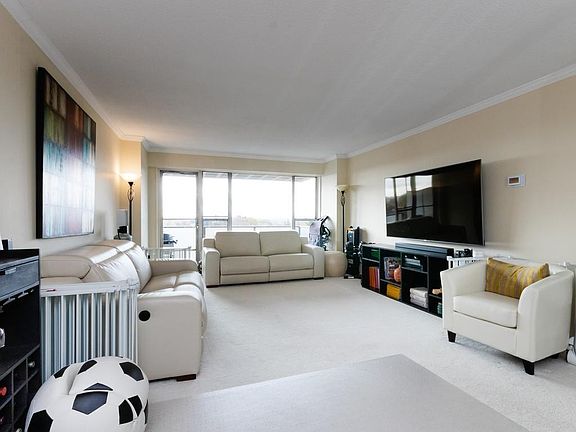 Motivated seller! GREAT PRICE ADJUSTMENT! Light and bright corner two bed, one bath unit on the 9th floor. Large entry way lined with closets leading to expansive living room with mirrored dining area. Picture window with private balcony off of the living room. Fully applianced kitchen with stainless appliances. Well sized master bedroom with walk in closet and generous second bedroom. South facing, sparkling white carpeting, a replacement fan coil in living room. Carefree lifestyle in concierge property with onsite management and maintenance and seasonal pool and tennis. Walk or bicycle to all J.P. has to offer including the Emerald Necklace, Jamaica Pond, Longwood Medical and public transportation. Lovely home in great property.