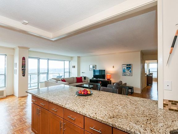 Rarely available, two bedroom, two bath 1310 square foot unit on the 17th floor. Entrance foyer with white tile leading to expansive living and dining rooms. The kitchen has been recently totally renovated and opened up to accommodate today's lifestyle. Granite counters, generous cabinetry and stainless appliances. Large and private balcony with clear glass to enhance the views facing south. Large master bedroom with bath and large closet space. The second bedroom has a very handy murphy bed and great space for home office or den. Lovely parquet flooring and decorative moldings as well as several extra closets in hall area. Jamaicaway Tower and Townhouses is a full service property with 24 hour doormen, onsite management and maintenance and seasonal swimming pool and tennis court. Walk to Jamaica Pond, Centre Street and public transportation. Ideal commute to Longwood Medical. Truly a home to live in and enjoy.