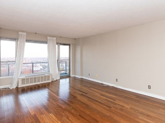 Amazing views of Boston and the Harbor. 21st floor, picture windowed, one bedroom. East facing with wonderful sunrises. Open and flexible floor plan with excellent closet and storage space. The flooring in the living areas has been replaced with hardwood. Fully equipped kitchen with renewed backsplash. Well sized bedroom. A perfect Boston home or pied a Terre. Full service property with doormen, onsite management and maintenance and seasonal pool. Work out in the two well equipped gyms and tennis court. Great location adjacent to the Emerald Necklace and Jamaica Pond. Walk to public transportation and to downtown Jamaica Plain. A lovely unit in a great community!