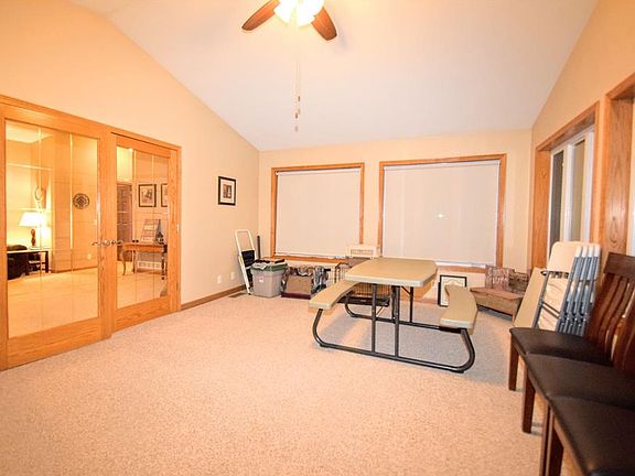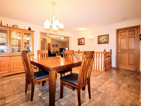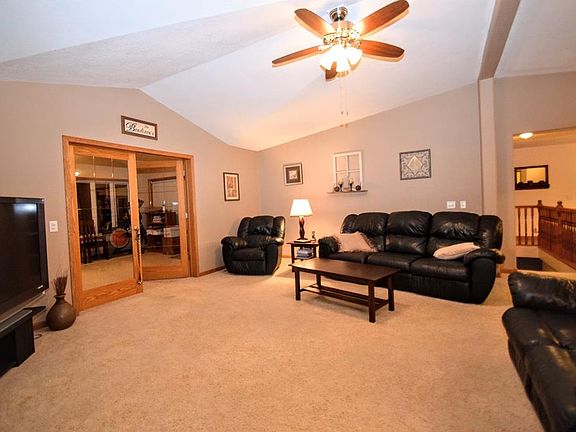 Beautiful, in town acreage with spacious, bright, open floor plan & over 2200 sqft on the main floor! This home features a great room 17.7x18 with cathedral ceiling, office, dining room, sun room 16x18, 3 large bedrooms, 3.5 bathrooms, 6 panel doors, sky lights, kitchen with multiple maple cabinets, above & under cabinet lighting, transom window, new appliances: double oven, dishwasher, refrigerator, island with breakfast bar, double pantry, lazy suzan, main floor laundry, half bath, deep laundry sink, new washer & new dryer. The master bedroom 17.8x13.9 features a walk in, walk through closet, bathroom with double sinks & linen closet. 2nd bedroom features, walk in closet and bath. The lower level features the 3rd bedroom, 3rd bathroom, spacious family room & storage.The heated 30x34 garage has a 2nd stairway to directly access the lower level. Metal utility shed 20x20 new in 2011. Relax & enjoy this beautiful acreage!