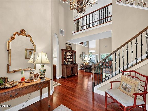 Step into elegance and comfort in this stunning home located in the gated, amenity-rich community of River Forest. Thoughtful design and timeless details set the tone throughout, with wood floors, arched doorways, and extensive trim work adding character and warmth.