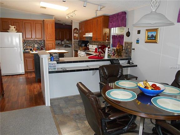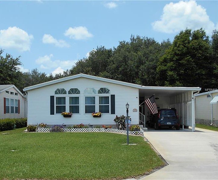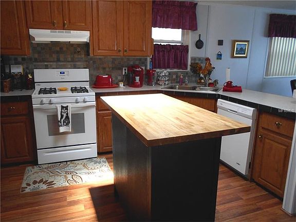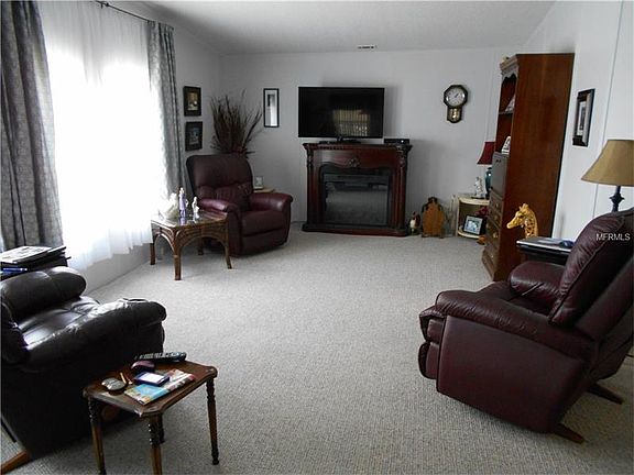 Exceptionally well maintained ranch home ON THE GOLF COURSE overlooking the pond. You will see the quality of this home from the minute you step inside. Laminate flooring throughout with beautiful Armstrong wood flooring in the dining area. The kitchen has an island with lots of storage, there is a deep stainless sink, a 2-year old gas stove, the original cabinets have been oiled to perfection with stone backsplash, a week old dishwasher and a new (2016) washer and (2014) dryer. The living area features a beautiful fireplace. The remodeled guest bath has ceramic floor and new vanity and mirror. The remodeled master bath gives you the option of adding another sink as the plumbing has been left intact. The 10-year old rubber roof has a transferrable warranty. Sellers have had the roof and insulation put right on over the beautiful glassed-in Florida room as well as the carport. Windows were replaced by Window World in 2015, there's a new hot water heater, and the a/c was replaced in 2013. Oh, yes, there's new plumbing also...and a golf cart. You will be proud to call this home.