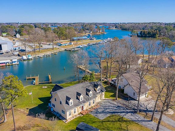 Boaters Paradise!! Bring all the family & the boats to come stay and play here! Rip Rap Shoreline of 170' on Cockrell Creek just off Ingram/Chesapeake Bay. Great deep water at the pier with 3-4.5'MLW (home all year to a 33' boat). Pier can accommodate 4+ boats, has running water, shower, 2 electrical outlets & four 30 AMP outlets for two boats plus a floating dock. Great creek cruising, dining, fishing and fun! Home features waterfront views from every room! Large Living Room with vaulted ceiling, gas wood stove, and is open to the Dining/Kitchen area with wonderful water views. Awesome Screen Porch with 17' peak tongue & groove ceiling with two patios on either side plus a fenced in yard all on waterside. 1st Floor En-Suite Bedroom, 1st Fl. Waterfront Bonus Room, large pantry/Utility Room, huge walk-in storage closet & attached 2 car garage complete the downstairs. Upstairs has 3 Bedrooms including a large En-Suite Master with a private Bath & Sitting Room, & a Guest Bath...room for all to play & stay! Maintenance Free Home with Haridplank & brick siding, conditioned crawl space, a composition Roof 10 years old, 2 water heaters, nearby Marina with fuel service, & great waterfront restaurants nearby.