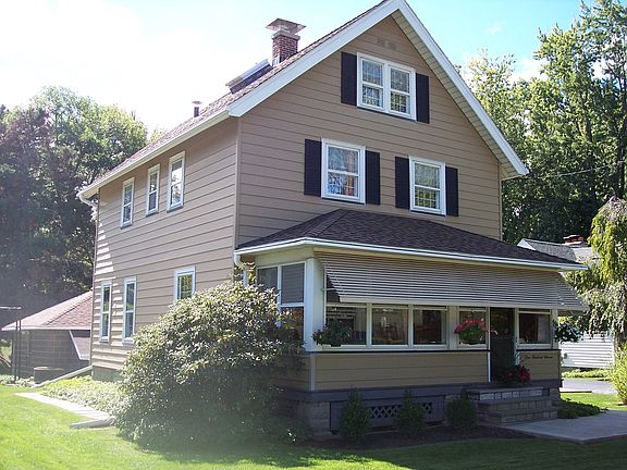 Meticulously maintained Colonial with gumwood trim, gleaming hardwood floors & stained glass window. Lovely eat-in kitchen w/42" oak cabinets; quartz countertops & upgraded appliances. Spacious formal din room & living room. Cozy front enclosed porch; Recent updates are 2015 Driveway; 2008 Hot Water Tank; many new windows; Enclosed walkway from garage to basement. Full attic for storage!