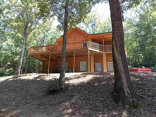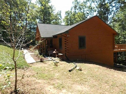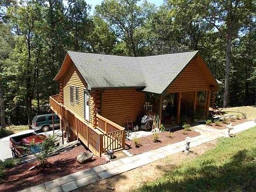 Southland Log Home and kept in very good condition since new. Seller has just had the home stained outside & decking redone with non skid stain. 3 full bedrooms upper level & two full baths. Lower level offers one more bedroom or use as a den for storage or office. Thee is also another full bath plus bonus room & a second kitchen is all plumbed for who ever needs this complete. The ceiling is all that would be need to call this actual finished sq footage. A dropped ceiling would be the thing to do. There is also a one car garage plus a yard access door to get in & out. A creek runs the bottom line of the property & this creek feeds what is known as Pinnacle Falls one of the many water falls that is on the registry in the Upstate. Plenty of decking & a covered porch to enjoy nature at is best. This home is only 1.5 miles to Table Rock State Park. Just a perfect setting.