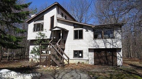 Located in the beautiful Pocono Mountains, close to many area attractions such as hiking, skiing, and white water rafting as well as the new indoor water park. Unique layout with sunroom off kitchen, living room with fireplace, private master bedroom, and partial finished lower level with built in garage and shed all nestled on a county acre.
