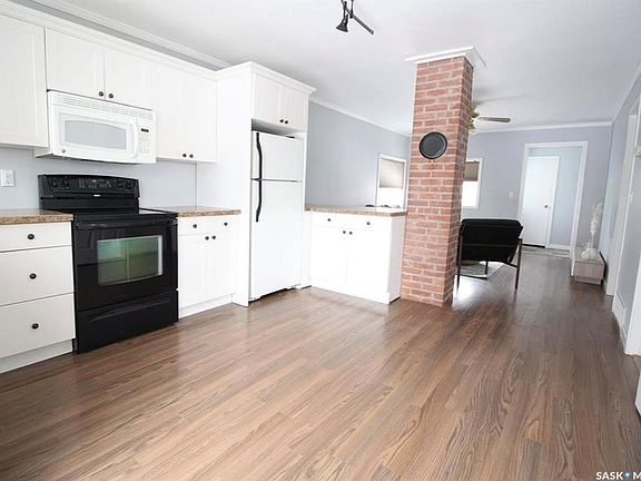 This beautifully updated bungalow offers modern comfort, a functional layout, and a fantastic location directly across from the school. It’s the perfect blend of convenience and privacy, surrounded by mature trees and a spacious yard. The main level features a bright, spacious living room and an updated kitchen with crisp white cabinetry, a convenient eat-up island, and direct access to the oversized back deck—ideal for entertaining or relaxing. You'll also find two generous bedrooms, a cozy den with a large picture window, and a beautifully tiled 4-piece bathroom. Downstairs includes a laundry room, a storage room, and a utility area—offering plenty of practical space. A new furnace was installed in 2023, adding to your peace of mind. Outside, the 50' x 200' yard is sure to impress. It offers incredible space for outdoor living, mature trees for natural privacy, and a large shed for extra storage. Affordable, move-in ready, and full of charm—don’t miss your opportunity to own this wonderful home. Call today to book your showing!
