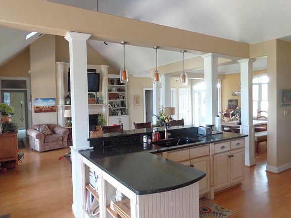 This custom built 4 bed/2.5 bath home is full of amenities and every attention to detail! Inside you'll find an open floor plan concept with a spacious great room featuring a cathedral ceiling, fireplace & built-ins, gourmet kitchen with solid surface countertops, breakfast bar, custom cabinets, pantry and stainless steel appliances, a casual dining nook and more formal dining area as well. The spacious master bedroom suite features a trey ceiling, walk in closet and nice bath with tile walk in shower and whirlpool tub. Located at the opposite end of the house are two additional bedrooms that share a 2nd full bath, and a 4th bedroom/office with wet bar & 1/2 bath nearby. Other features are bamboo flooring, crown molding, decorative lighting, bonus room, laundry room and attic space.Attached garage, 24x28 outbuilding, outdoor kitchen & beautiful landscaping! This could be your Dream Home!