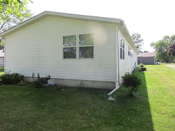 3 bedroom 2 bath manufactured home on a foundation. Walk in Closets in all bedrooms. Open floor plan to Kitchen, Dining Room and Living room. Breakfast bar a kitchen counter. All Applicances stay. Water softner is owned. 24 x 20 Garage w/ shelving. Covered Patio. Handicap Ramps at front door and in Garage Entry. New Roof, Will be new siding on North, East and West sides.