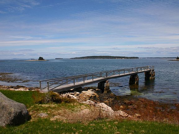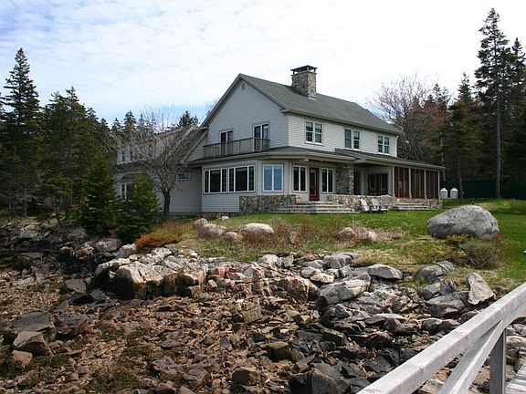 Beautiful oceanfront summer cottage with a deep water dock and boathouse located in the desirable seaside community of Point Lookout on Isle Au Haut. The spacious, 5-bedroom home which offers fantastic water and island views from most rooms. Large living room with a gorgeous stone fireplace, a chef's kitchen with a 6-burner professional range and a charming screened-in porch. A unique feature of the home is a babbling brook that flows beneath the ocean view sitting room. The 11.6 +/- acre property enjoys spectacular western views of the Isle au Haut Thorofare, Penobscot Bay and offshore islands with the Camden Hills in the distance. The granite pier and float and a shingled boathouse at the water's edge makes this the perfect home for boaters. There is also a newly-built gardening shed and a sandy beach to enjoy at lower tide. Point Lookout is a private neighborhood of lovely, shingled summer cottages. Optional membership in the association includes access to a team of caretakers, a shared pier with potential boating moorings, picnic area, tennis courts and a private float on Long Pond. More than half of Isle au Haut is part of Acadia National Park which offers wonderful hiking trails and wonderful protected vistas. Island amenities include a year-round grocery store and swimming and fishing at Long Pond. Isle au Haut is accessible by private boat, float plane or year-round passenger ferry from Stonington, located about five miles away on the mainland.