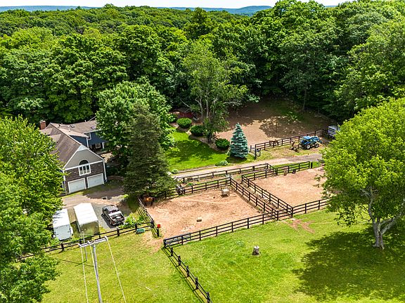 RIDGELAND FARM, A long established 6.3 acre private equestrian facility nestled in the heart of Connecticut with a 3150 sq.ft home, a 10 stall barn that has a owners' tack room, grain room, wash stall and laundry. This barn is attached to the 72 x 210 ft indoor arena which has 2 viewing rooms. There is a 25 x 55 heated maintanence garage with studio above. The home offers an open floor plan, large kitchen/dining area, 4 bedrooms, a beautiful master bedroom suite, 3 full baths, great room, garage and shop below. The stone patio is a favorite spot for sitting back and overlook the horses grazing in the pastures. Additional 19.6 acres of Hay fields, and pasture available see listing # 24022256
