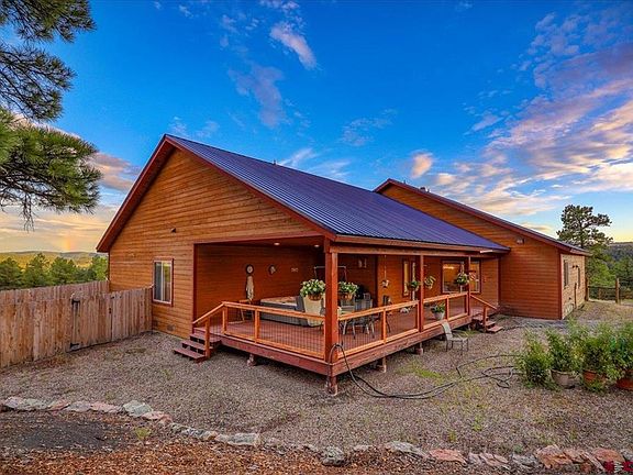 Single story home with so much to offer, it will be hard to get everything in this description… so just schedule a showing now! Single story, pristine home on nearly 8 acres, and Panoramic Views of the East Range of the San Juans. End of the road location ensures maximum privacy so you can enjoy the meandering Elk herds, deer, fox, turkeys – some right outside your door. Radiant heat for warm toes and clean air all through the winter; perfect for the allergy sensitive as it is the most dust free heat. Large chef’s kitchen with hickory cabinets and  lots of storage. Laundry room off the garage makes a convienent place to drop snowy clothes. Gas log fireplace perfect to take the chill off the cool Colorado nights. Large primary suite with huge walk-in closet and large ensuite bath located on one side of the home to allow privacy from the other guest rooms on the opposite end. Head outside and there is more fun to be had! First off, nearly new “Endless Lap Pool” features varying degrees of resistant wave action for fitness and therapy. There is also an additional hot tub that you can keep the heat cranked up on to unwind after a day of playing in the San Juans. Detached heated studio space would make a great guest room, private home office, maker space, workshop or artist’s retreat. Professionally landscaped to be low maintenance zero-scaped all drip line irrigated. Trex decks front and back for additional low maintenance living – just bring a hammock and you will be in heaven! Property is convientely located 5 minutes from town with a  gated, fenced interior. In addition there is a dog area that has critter proof high fencing and an electric line so 4-leggeds are safe to be out for as long as they would like. Home is immaculate and ready for a new owner to make Pagosa memories.