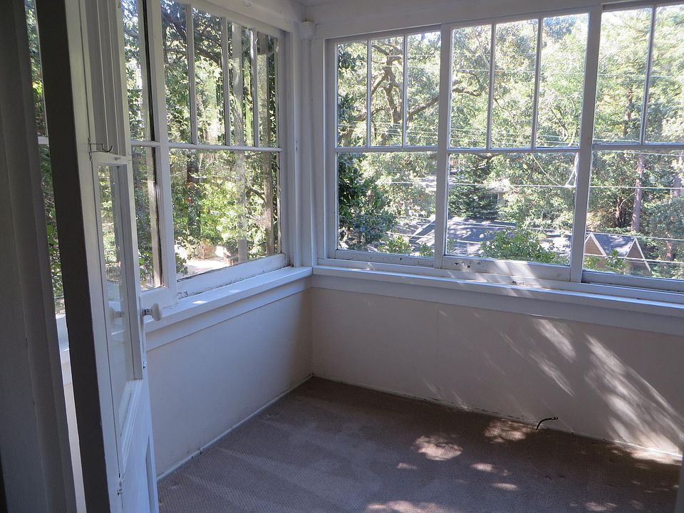Charming, large, first floor 1+ bedroom apartment in a two-unit duplex. This apartment, ideal for one person, is on the first level of the building and features a separate office/den, fenced side yard, large enclosed front porch, and one off-street, covered parking space. Our house, surrounded by redwood trees and overlooking a peaceful canyon, was built in 1912 as a summer house. It is in a great location on a quiet street at Yolanda Station, only a 15-minute walk to town and a quick 20-minute drive to the ferry. Features include: Spacious enclosed porch Comfortable living room Large dining area, with room for a 6-person table Separate kitchen Bedroom with French doors Spacious walk-in closet with additional storage Sunny bonus room, which can be used as an office or den Bathroom with claw-foot tub and separate shower Dedicated carport parking space (1) Shared laundry Access to sunny garage roof deck garden Landlord pays for garbage and water. Tenant pays their own PG&E, billed separately. Pet considered. Landlord pays water & garbage.