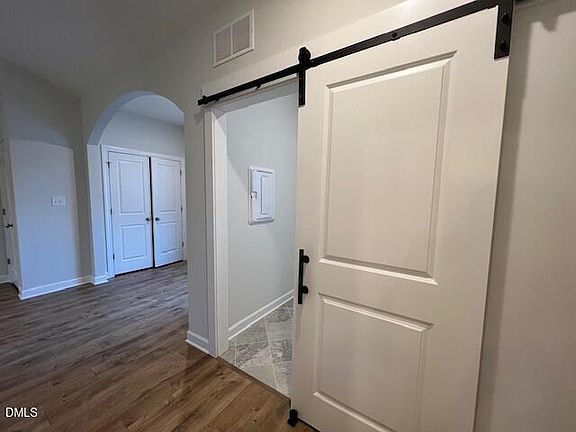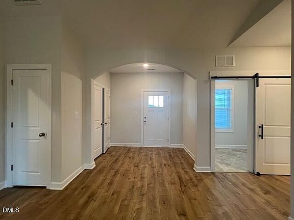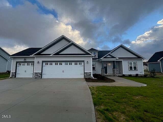 Welcome home to timeless design and thoughtful details in this Craftsman-style ranch with a hint of farmhouse flare. Step through a spacious foyer into a breathtaking cathedral-ceiling living room—designed to feel open and serene, with a comfortable flow. At the heart of the home, the gourmet kitchen is as functional as it is beautiful, featuring soft-close shaker cabinets, a stylish tile backsplash, stainless steel appliances (including a microwave vented to the outside), recessed and pendant lighting, and a layout perfect for entertaining and everyday living. Enjoy the comfort of this split floor plan, offering space and separation for family or guests. Tucked away for privacy, the Primary Suite is a true retreat—highlighted by a dramatic double-tray ceiling, two custom walk-in closets with built-in wood shelving, and a spa-inspired bath with soaking tub, separate vanities, and a walk-in shower. The laundry room, set behind a stylish barn door, combines convenience with character and makes daily routines effortless. Located in a welcoming, sidewalk-lined community ideal for evening strolls, walking the dog, bike rides, and connecting with neighbors, this home offers both charm and lifestyle. Built by a small, local builder known for quality and craftsmanship—you'll feel the difference.