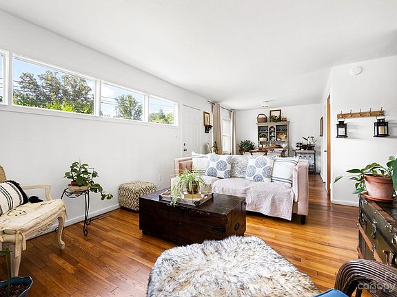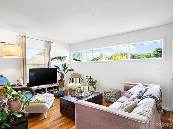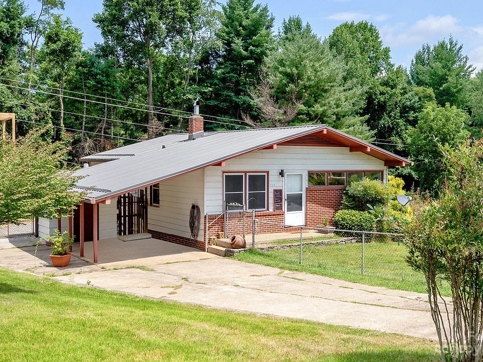 Absolutely charming, mid-century style home in the convenient Richmond Hill neighborhood! Amazing curb appeal with the quintessential mid-century shallow-slope metal roof and carport. Excellent light in the living room, plus a newly remodeled kitchen and bathroom that stay true to the classic style. Hardwood floors in living, dining, and bedrooms; new tile in the kitchen and bathroom. Stellar location with a disc golf course, mountain biking and hiking trails right in the neighborhood — also just around the bend from the French Broad River and all the venues and breweries along Riverside Drive. Large corner lot with plenty of room for expanding the home. This darling cottage is perfect for a primary residence or for an investment property.