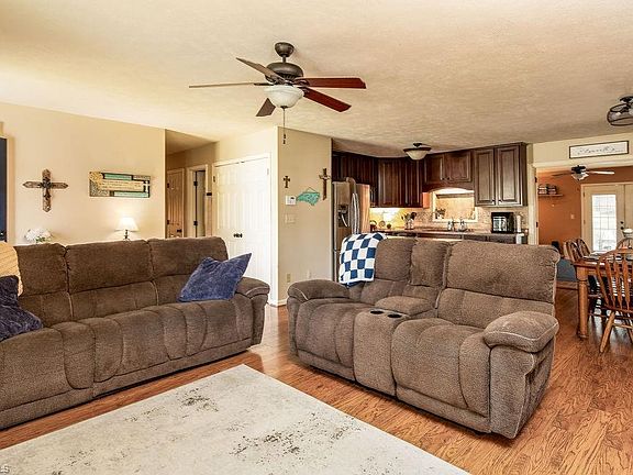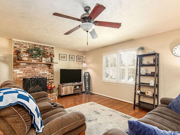 Discover this spacious, one-level brick home offering 3 bedrooms, 2 bathrooms, and a versatile bonus room. Designed for effortless living, the home features a chef-inspired kitchen complete with an island, tile backsplash, and generous countertop and cabinet space. The primary suite boasts a large bedroom and a beautifully tiled walk-in shower. Step outside to a covered back patio overlooking a fenced-in backyard with a storage building, ideal for outdoor activities and extra storage. Centrally located near the highway, this home provides easy access to nearby amenities while maintaining a peaceful, comfortable retreat.